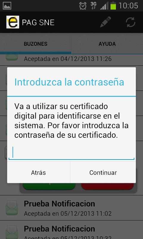 3. Deberás instalar tu certificado electrónico en el dispositivo, que te permitirá entrar en tu buzón para aceptar, firmar o rechazar cualquier comunicación o notificación.