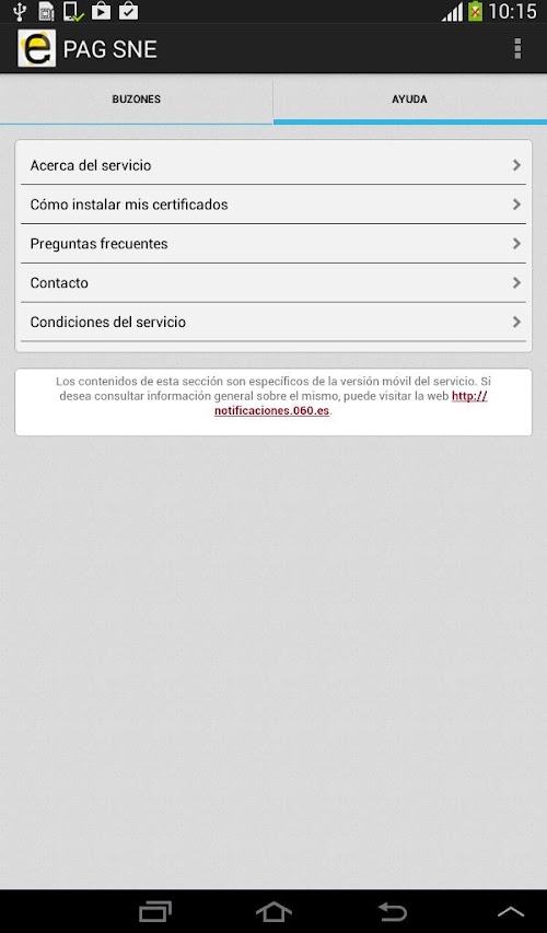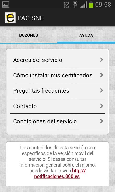 1. To use the application, you'll need before you sign up on the web http://notificaciones.060.es/ and have an electronic certificate.