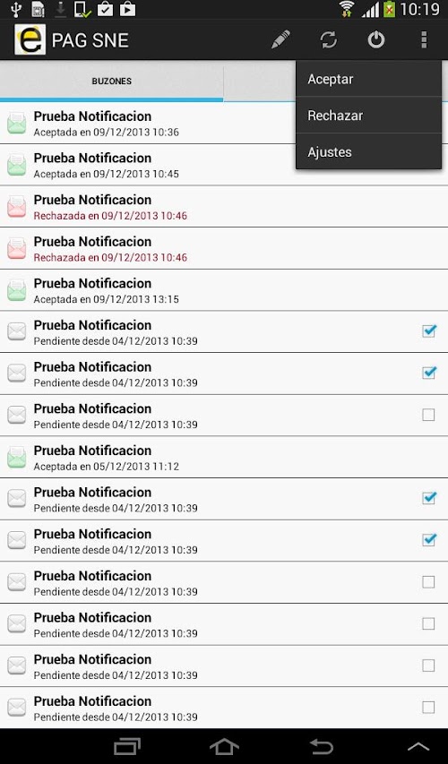 La aplicación, a través de notificaciones push del dispositivo, te informa cada vez que una notificación entra en tu buzón, reduciendo el riesgo de que no conozcas a tiempo una notificación.