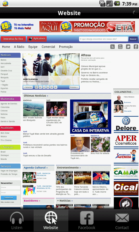 A rádio das novidades e dos clássicos. Informação com credibilidade. A Interativa é a primeira na região de Tupã/SP a transmitir para os celulares em todo o mundo.The radio news and the classics. Information credible. The Interactive is the first in the region of Tupa / SP to transmit to mobile phones worldwide.
