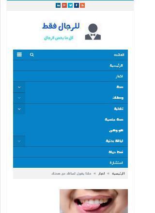 تطبيق يقدم كل ما يخص الرجال من معلومات صحية بواسطة اطباء متخصصين و احدث صيحات الموضة الرجالى من ملابس وساعات وعطور ونصائح هامة من اجل مظهر جذاب وانيق بالاضافة إلى وصفات طبيعية ورجيم وفوائد هامة , يتم تحديث التطبيق باستمرار ليكون الرجال على علم بكل ما هو جديد فى عالمهم من صحة واناقة Application offers everything that men of health information by specialist doctors and the latest fashion Gents of clothes, perfumes and tips are important for the attractive appearance and elegant addition to the normal recipes and diet are important benefits, the application is constantly updated to be men aware of all that is new in their world of Health and elegance
