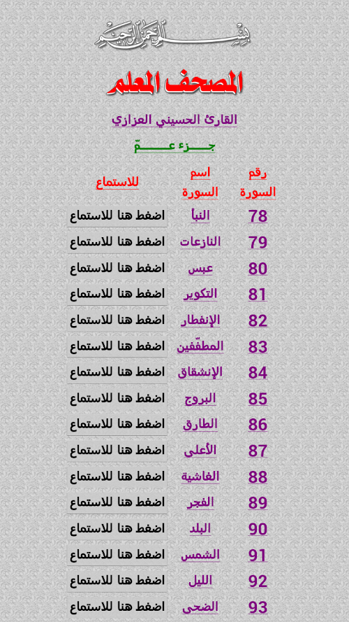 برنامج صغير يحتوي على جزء عم للمرحلة الابتدائية