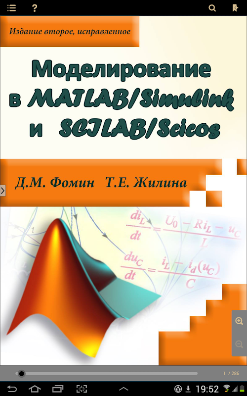 Ф 762 Моделирование в MATLAB/Simulink и SCILAB/Scicos: учеб. пособие / Д.М. Фомин, Т.Е. Жилина; под ред. П.В.Пакшина. Нижегород. гос.техн. ун-т им. Р.Е. Алексеева. – 2-е изд., испр. – Н.Новгород. 2012 – 287 с.
