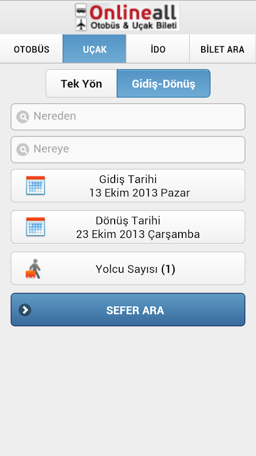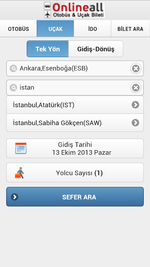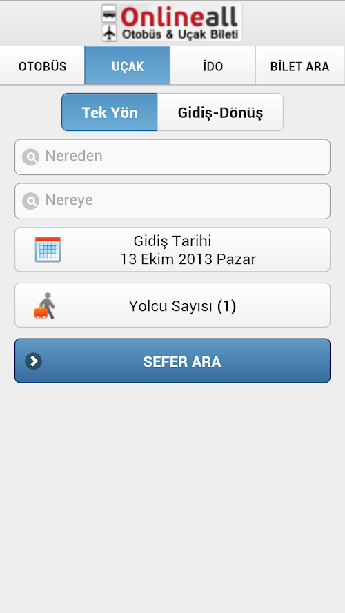 You can search our site Flights from ucakbiletiall.net Online. Turkish Airlines, Anadolu Jet, Atlasjet, SunExpress, Borajet and Domestic - Abroad Can questioning your airline tickets, your Campaign To Get Cheap Airline Tickets via our website. However, if you specify a date in the Online Forum On your journey you can make your reservation transaction finalized. You can receive our Flights over the site, Flight bookings can perform and you can do with your online check-in process required for flight.