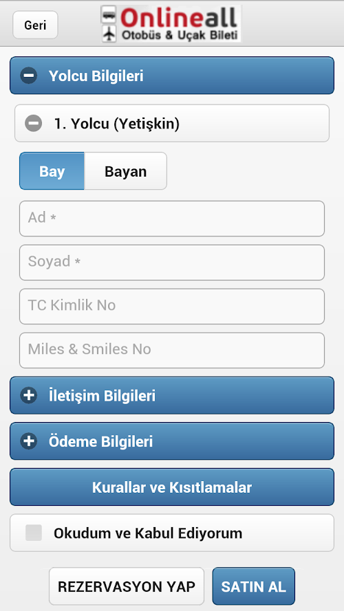 Satın Alma ve Rezervasyon İşlemi Yapabilirsiniz.