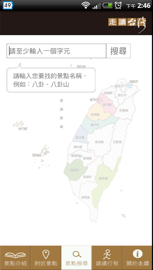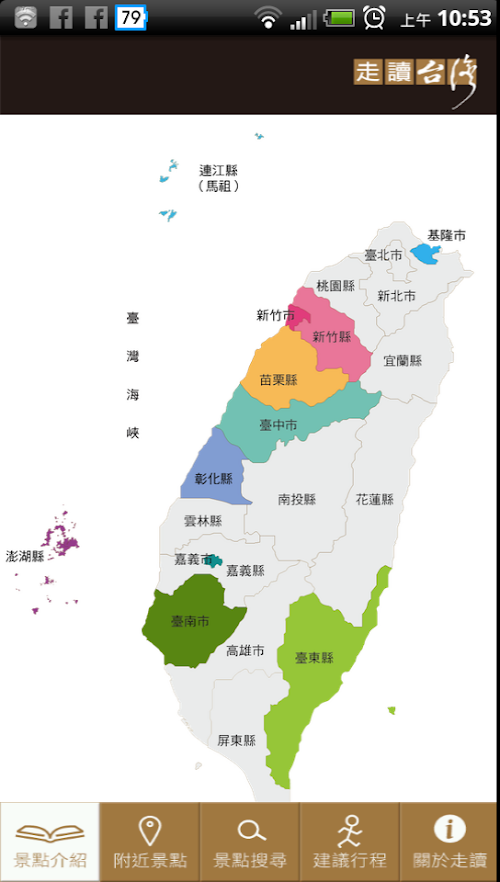 走讀台灣手機版導覽APP,目前已完成收錄縣市包含: