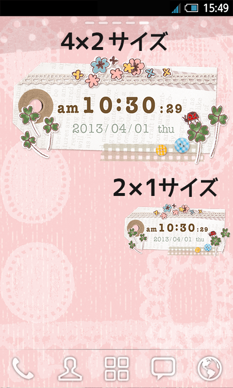 ※Android端末の仕様により、アプリケーションを「SDカードに保存」された場合、ウィジェット時計としてご利用いただけません。その場合「端末本体に移動」させることによりご利用いただけるようになります。ウィジェット選択で当アプリケーションが表示されない方はこちらをお試し下さい。