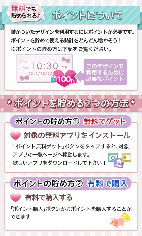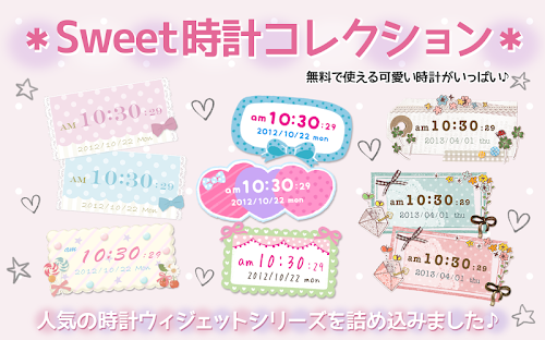 無料で使えるかわいい時計&壁紙がいっぱい♪ 女の子のためのガーリーデザインをたくさ~ん詰め込みました♪