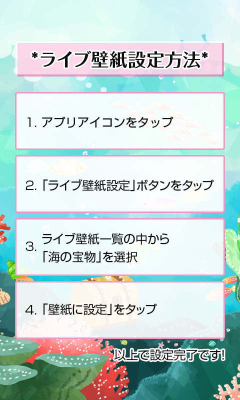 とっても可愛い海の世界をあなたのスマホへ閉じ込めて、まるで海の中にいるような、癒しのホーム画面に変身!