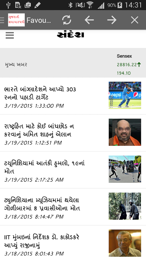 Gujarati News (ગુજરાતી સમાચારપત્ર) app facilitates users with all popular Gujarati newspaper site in one app. Now users can always stay updated with latest news in Gujarati by just one click away.