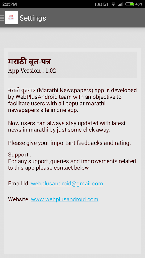 This version of Marathi News (मराठी वृत Android App comes with one universal variant which will work on all the Android devices.
