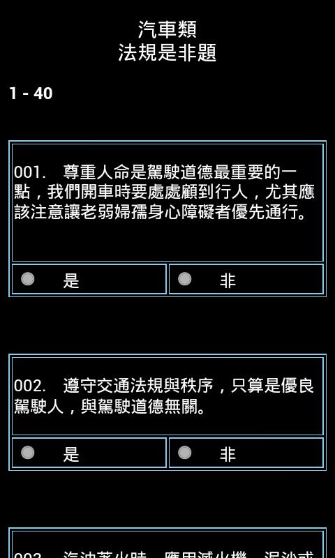 本應用程式參照公路總局的網上版,每個練習有四十題,頁面上下翻動,方便來回查看,操練時更即時顯示正確答案,以加深印象增強記憶,預備考試的您可利用在外的空檔時間,隨時拿起手機模擬考練一番,既方便又實用。