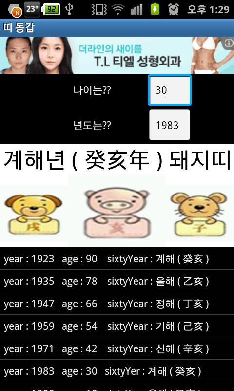나이 또는 태어난 연도로 그해의 띠와 띠동갑들을 알수 있음.