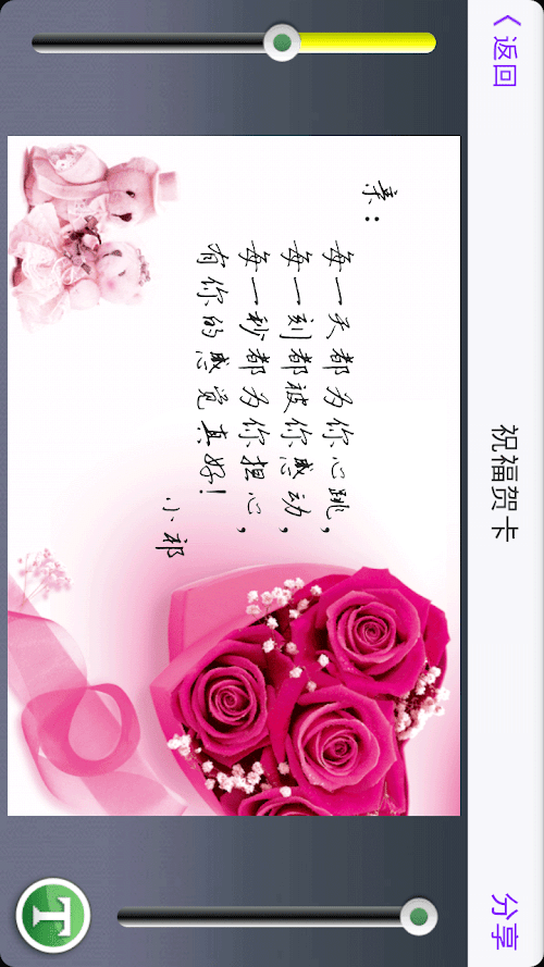 情人节送祝福是一款非常棒的祝福软件,提供了全面的情人节祝福短信。并且还能帮你DIY出属于自己的情人节贺卡,短信贺卡等,您可以分享到短信,微信,QQ,微博,人人等.是情人节到来之际送给爱人准爱人情人准情人的必备秘籍!Valentine's Day is a great blessing to send blessings software, provides a comprehensive Valentine's Day blessing SMS. And also help you out of your own DIY Valentine's Day greeting cards, greeting cards and other messages, you can share the text messages, micro-channel, QQ, microblogging, everyone, etc. is the arrival of Valentine's Day give prospective lover lover lover lover quasi essential Cheats!