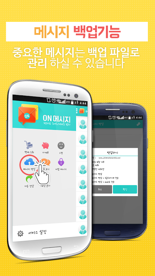 - 수신된 문자메시지를 SD카드 및 클라우드에 백업하여 저장하거나, 백업된 파일로 문자메시지를 복구합니다.