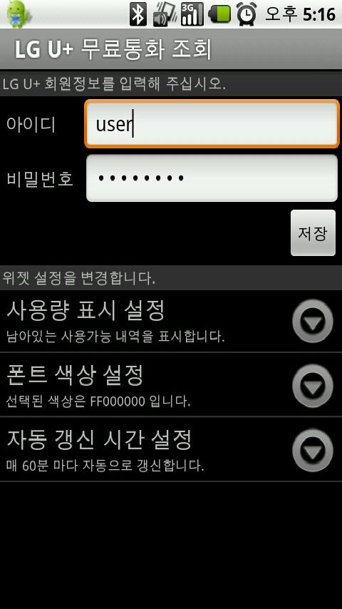 LG U+ 무료통화 요금제(OZ스마트폰 요금제) 사용시 제공되는 무료 통화/문자/데이터에 대한 사용/잔여 내역을 검색하여 알려주는 프로그램입니다.