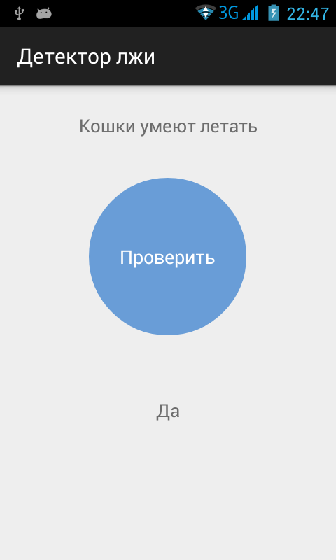 С помощью этого приложения вы сможете узнать говорят вам правду, или же врут. Задайте вопрос своему телефону, и он даст вам верный ответ.With this application you can find tell you the truth or lying. Ask a question about your phone, and it will give you the right answer.