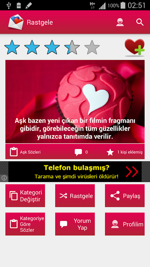 6. Sevdiğiniz sözler için yorum ekleyebilir, başkalarının yorumlarını okuyabilirsiniz.