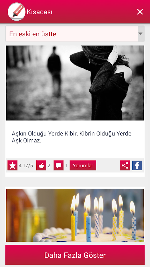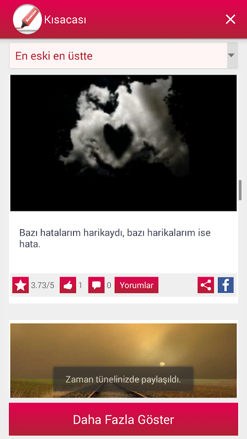 Kısacası, eğlenceli bir uygulama oldu... :) Kısacası; kısa ama anlamlı, güzel sözleri ve resimleri herkesle paylaşmanız için geliştirilmiş bir sosyal paylaşım uygulamasıdır.