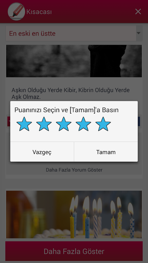 - YILDIZ düğmesine tıklayarak puan verebilirsiniz.