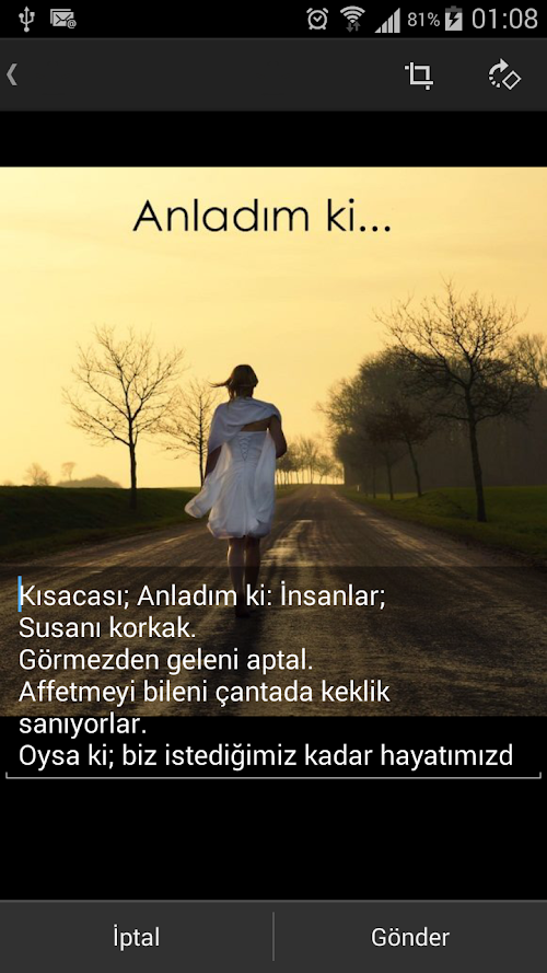 In short, it was a fun practice ... :) In short; short but meaningful, beautiful words and images is a social networking application developed for sharing with everyone.