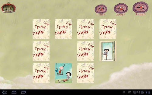כפתור "משחק" - משחק זיכרון עם דמויות מתוך הספר בשלוש רמות קושי.