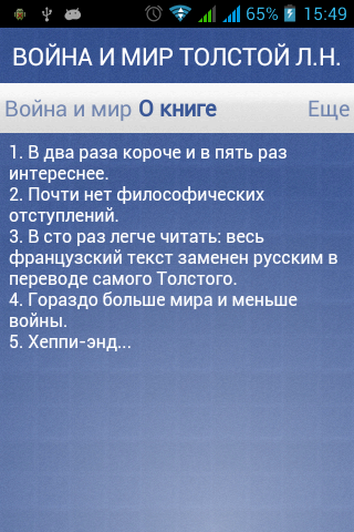 This version of "ВОЙНА И МИР" Толстой Л. Н. Android App comes with one universal variant which will work on all the Android devices.