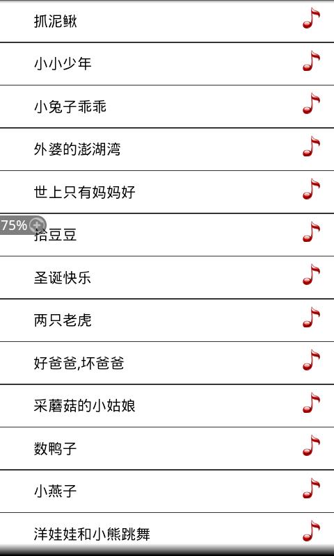 此软件为小朋友们准备了许多熟悉的儿童歌曲,如:我的好妈妈、小毛驴、采蘑菇的小姑娘等等。