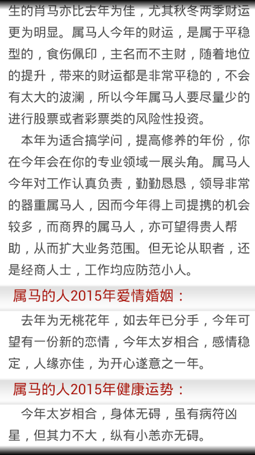 要想知道2015年需要注意哪些方面,2015年是否适合创业,2015年桃花运怎样,就下载这个软件测测吧!