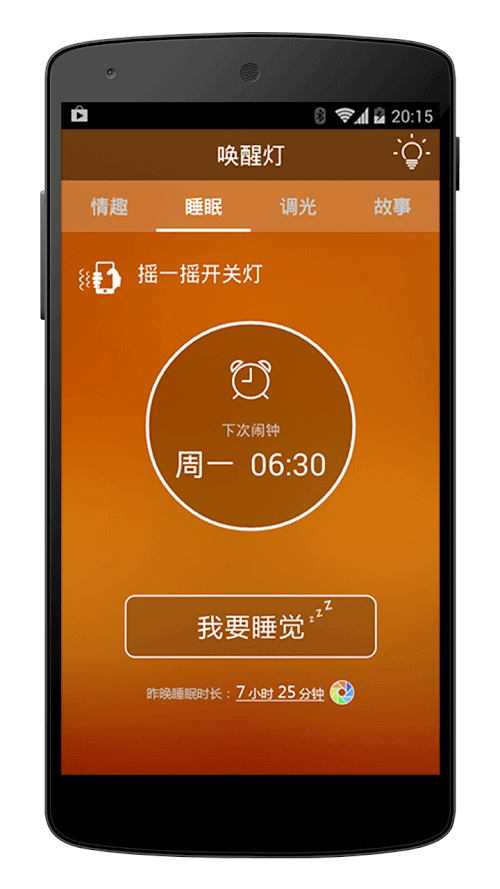 本应用需配合6点半唤醒灯一同使用,6点半唤醒灯是支持BLE4.0(低功耗蓝牙)的智能设备,淘宝网搜索:6点半唤醒灯