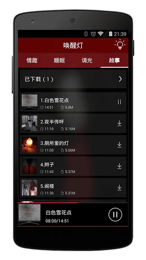 唤醒灯故事模式:伴随故事情节的起伏跌宕配合紧张酷炫的灯光效果,为你营造出更诡异、更刺激的真实故事场景,给你一种全新的视听体验;