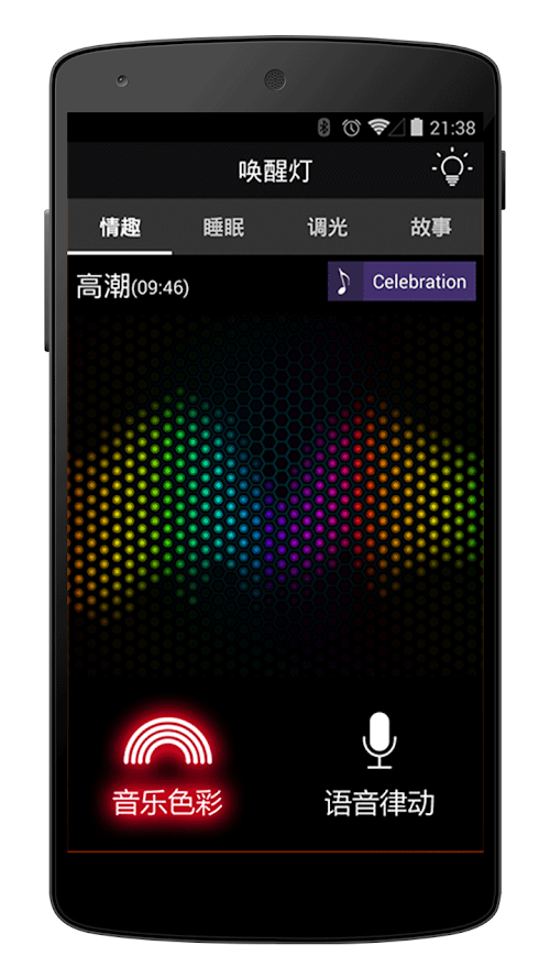 唤醒灯情趣模式:语音、音乐、灯光的交融互动给你营造不一样的爱情氛围;