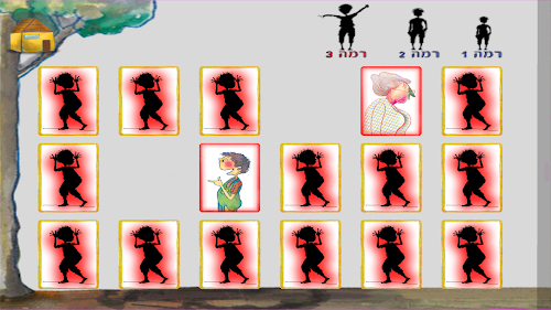 • כפתור ''משחק הזיכרון'' - משחק זיכרון עם איורים מתוך הספר בשלוש רמות קושי
