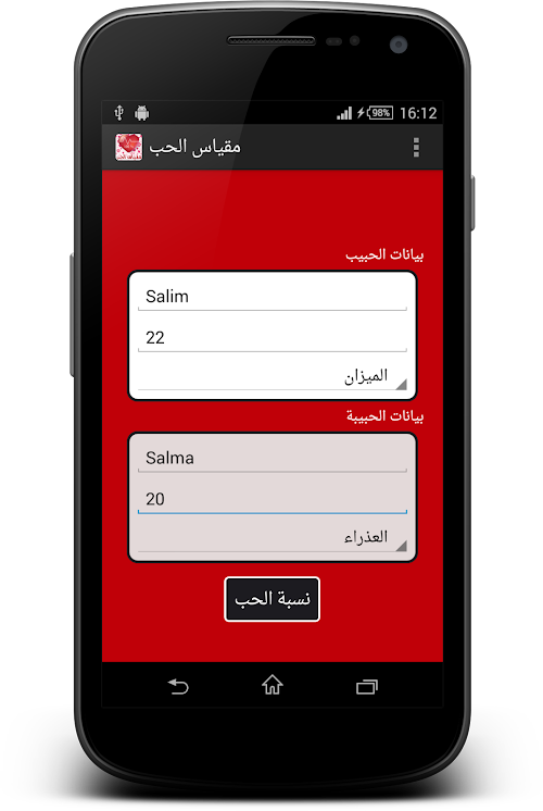لا تنسى أن تقوم بالتصويت بخمسة نجوم على التطبيق لكي تساهم في تطويره Application of measuring the proportion of love by the towers is a simple application that measures the percentage of love between you and your lover, and by following these steps: