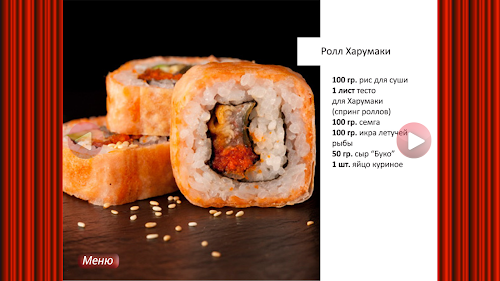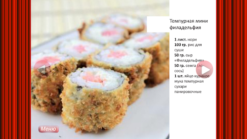 Приятного аппетита!In this book you will find about 32 pages with recipes rolls Japanese cuisine.