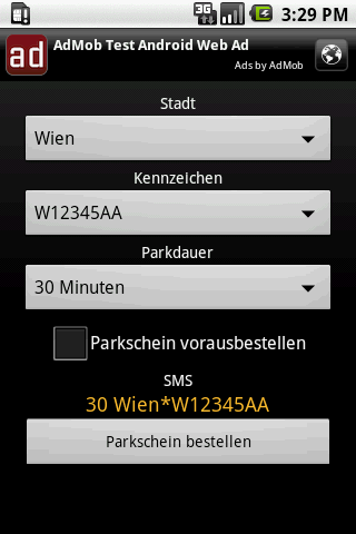 Die Servicenummer für handyparken ist auf 082820200 voreingestellt und kann in den Einstellungen verändert werden (z.B.: 06646606000). ACHTUNG: Für 0828-Nummern können, abhängig vom Mobiltarif, erhöhte SMS-Kosten auftreten.With "Parking in Austria" drops the sending of SMS messages park easily at handyparken.at. Entries can be made fast and easy by simply selecting. Supported cities: Bregenz, railway village, Gmunden, Klagenfurt, Korneuburg, Mödling Perchtoldsdorf, Stockerau, St. Pölten Villach Weiz Wels, Vienna and Wolfsberg.