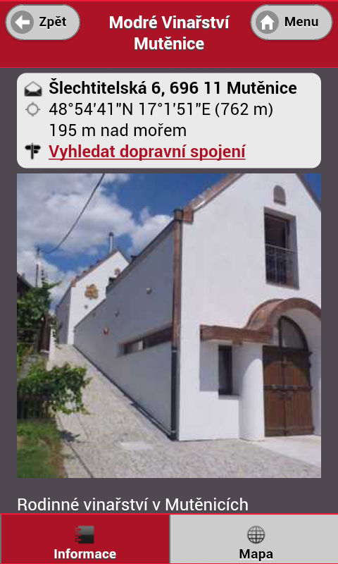 Aplikace vznikla v rámci realizovaného projektu komplexního turistického informačního a navigačního systému po sklepních uličkách na jižní Moravě. Cílem je usnadnit návštěvníkům navigaci po sklepních uličkách ve 33 obcích a umožnit nalézt vybrané turistické cíle a služby v jejich okolí. Objekty je možno nejen vypsat v seznamu, zakreslit na mapě, ale také zobrazit v rámci rozšířené reality (augmented reality).