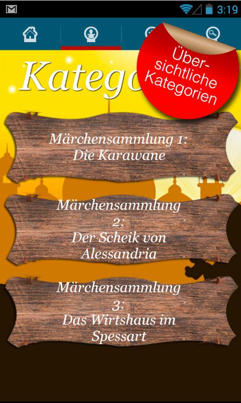 Die App enthält in der Vollversion alle Märchenbücher und Geschichten von Wilhelm Hauff - unter anderem: