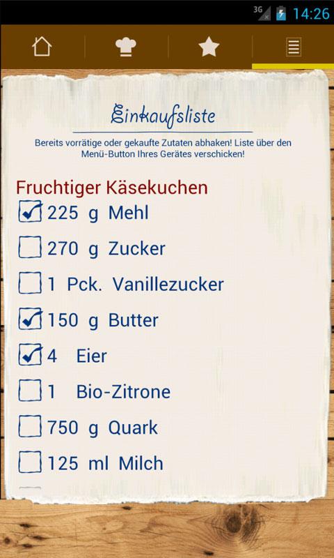If desired, you can send your shopping list via email - great for printing! Or to Schatzi to remember what he should still shopping. The same goes for the cake recipes - so practical as it gets!
