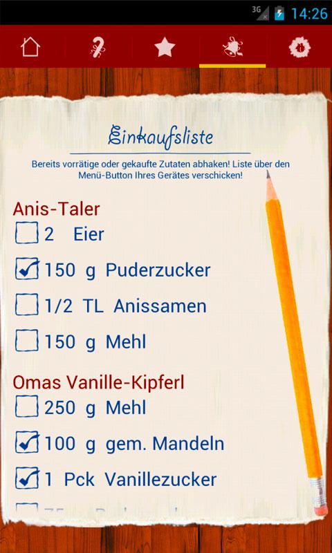 Setzen Sie Ihre Back-Rezepte auf die Einkaufsliste, und haken Sie die Zutaten beim Einkaufen ab