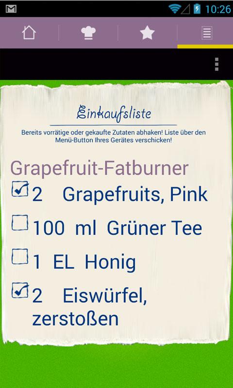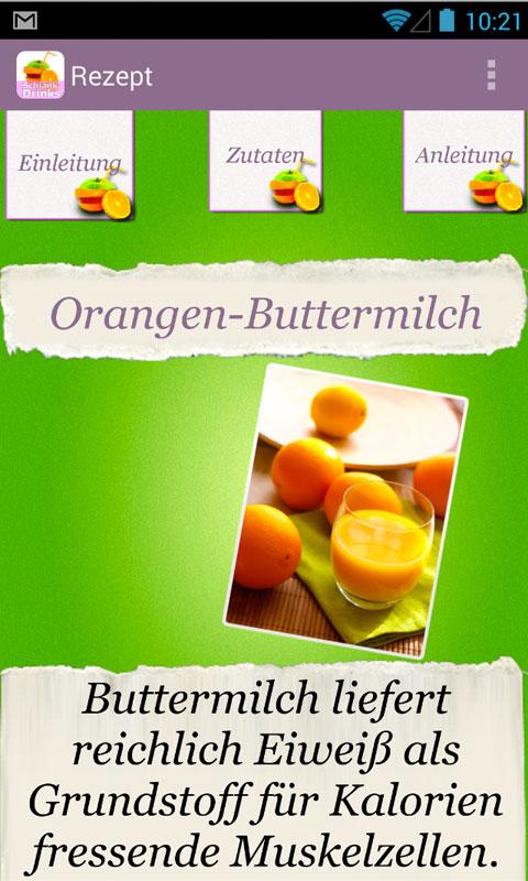 "Die App zeigt Ihnen nicht nur wie in einem Kochbuch, was Sie benötigen und wie Sie die Drinks zubereiten, sondern auch, wie das Getränk wirkt. So wird zum Beispiel erklärt, dass das im Kiwi-Sauermolke-Drink enthaltende Pektin als natürliche Appetitbremse wirkt" (Chip.de)