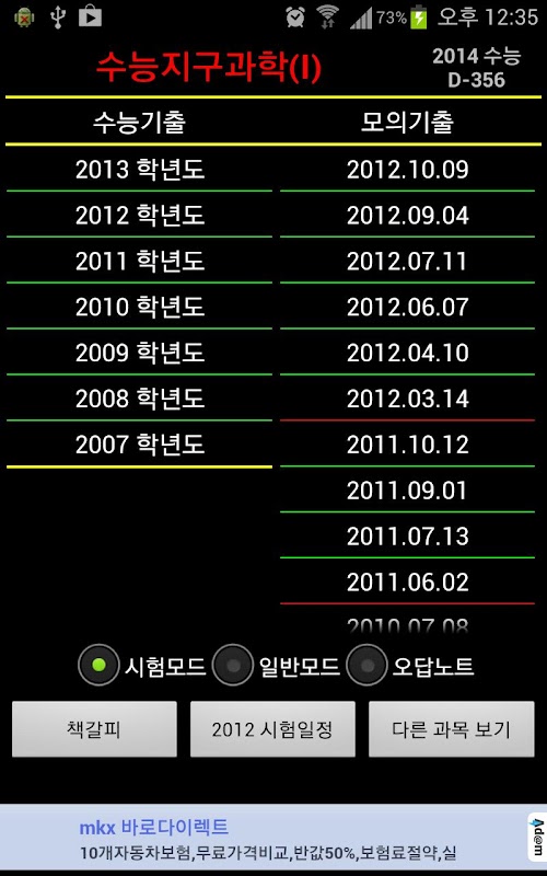 안드로이드 수능앱 중 지구과학 과목의 최근 12년간의 수능기출문제와 13차례의 수능모의고사를 포함하고 있는 앱입니다.
