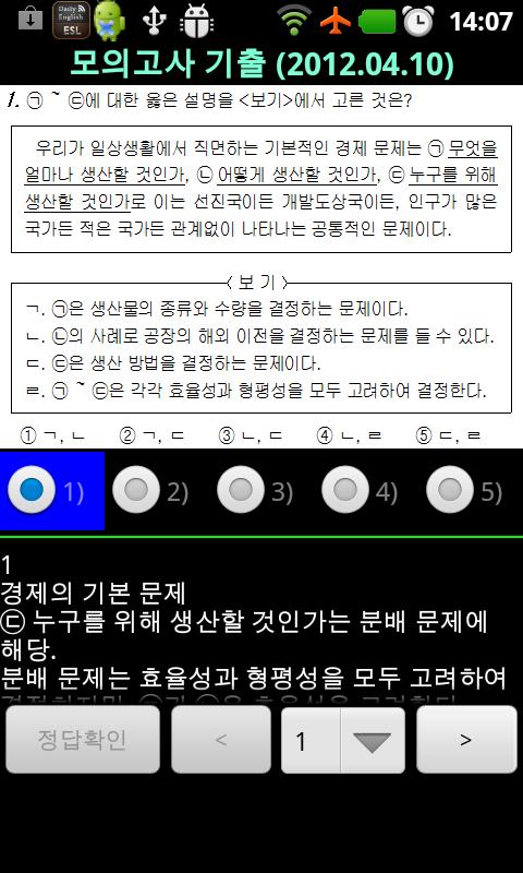 안드로이드 수능앱 중 경제 과목의 수능 기출문제와 수능모의고사 10회분을 포함하고 있는 앱입니다.