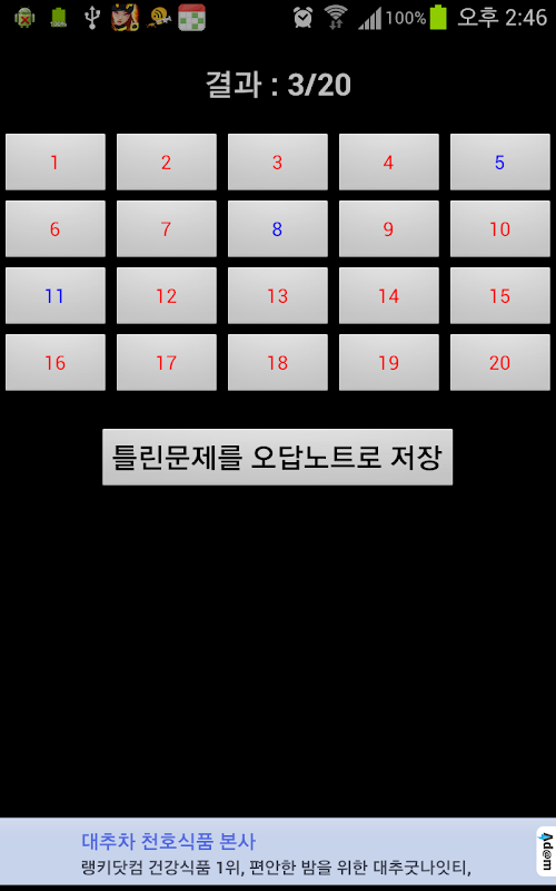 시험모드로 다 풀고 난 뒤 틀린 문제를 저장할 수 있는 오답노트 기능도 제공합니다.