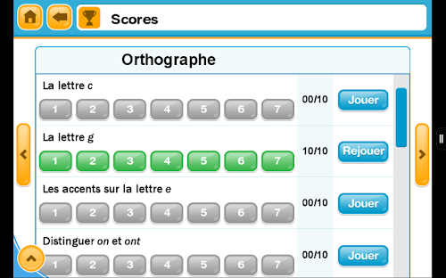 - Un tableau de scores permet de suivre la progression de l’enfant.