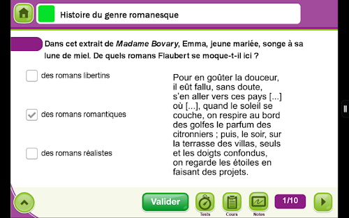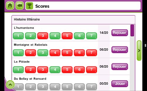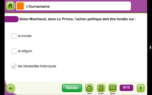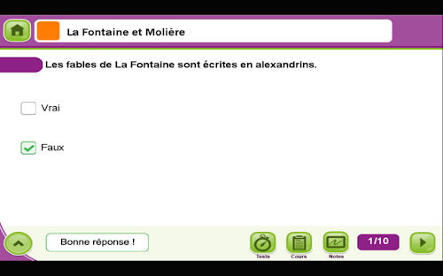 - « Tests » : Ce mode permet de se tester en un temps limité pour valider ses connaissances.