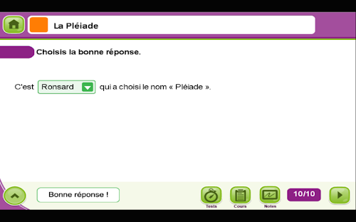 - « Entraîne-toi » : 10 exercices variés sont proposés de manière aléatoire en fonction du thème de révision choisi.