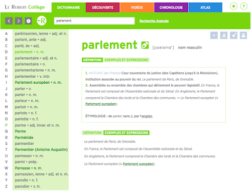 Equip your shelves with the reference library for college! Quick and easy to see, a comprehensive resource to promote mastery of French and enrich the general culture. A playful dictionary access through multimedia features (videos) and interactive.
