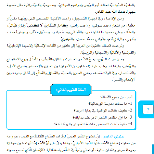 • تحفظ نماذج مختلفة من الشعر الحديث تمثل إتجاهاته ومدارسه المختلفة.Dear student,