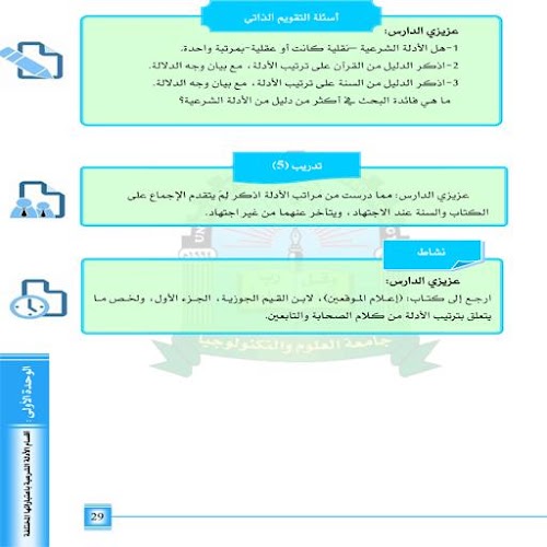 (1) توضح أقسام الأدلة الشرعية باعتباراتها المختلفة، من حيث الاتفاق والاختلاف، والأصلية والتبعية، والعقلية والنقلية، ومراتبها.